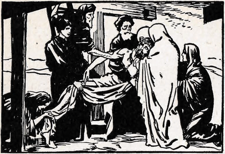 Priest: Consider how our Lord having expired, two of His disciples, Joseph and Nicodemus, took Him down from the Cross, and placed Him in the arms of His afflicted Mother, who received Him with unutterable tenderness and pressed Him to her bosom.