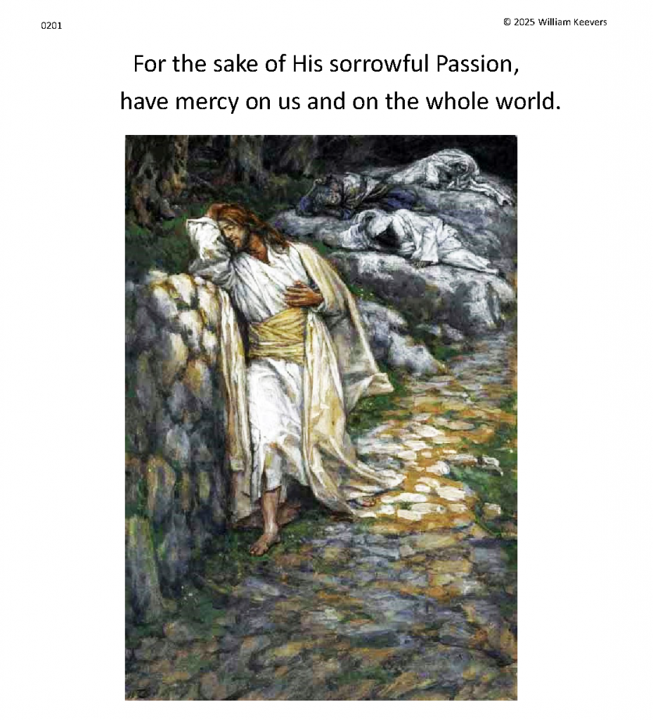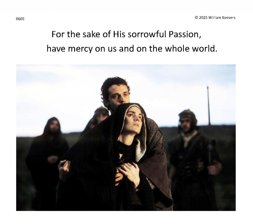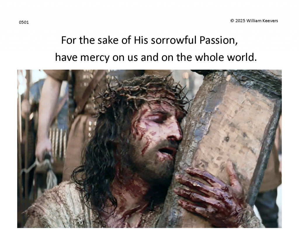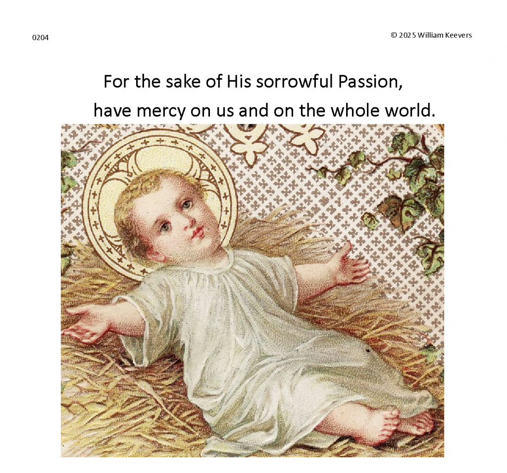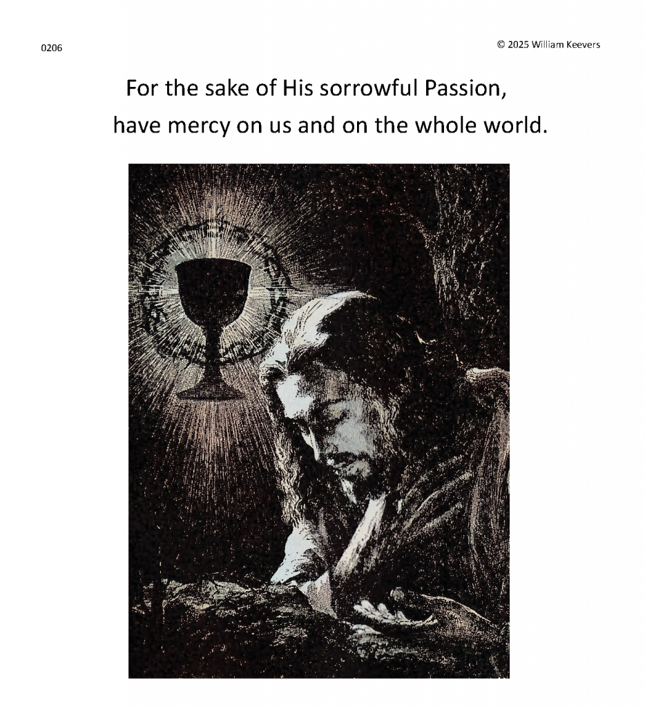 This page is a mockup for a video of The Chaplet of the Divine Mercy currently under development. The video’s elements are in three layers.