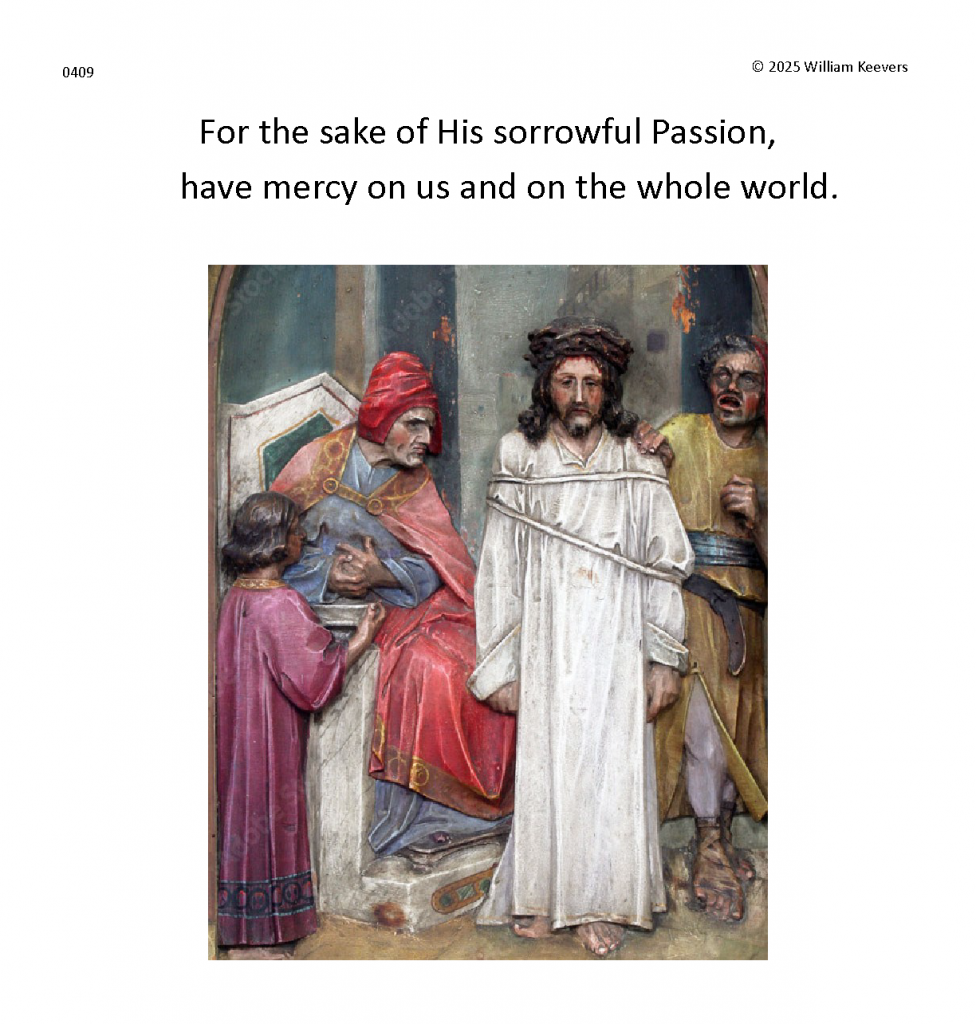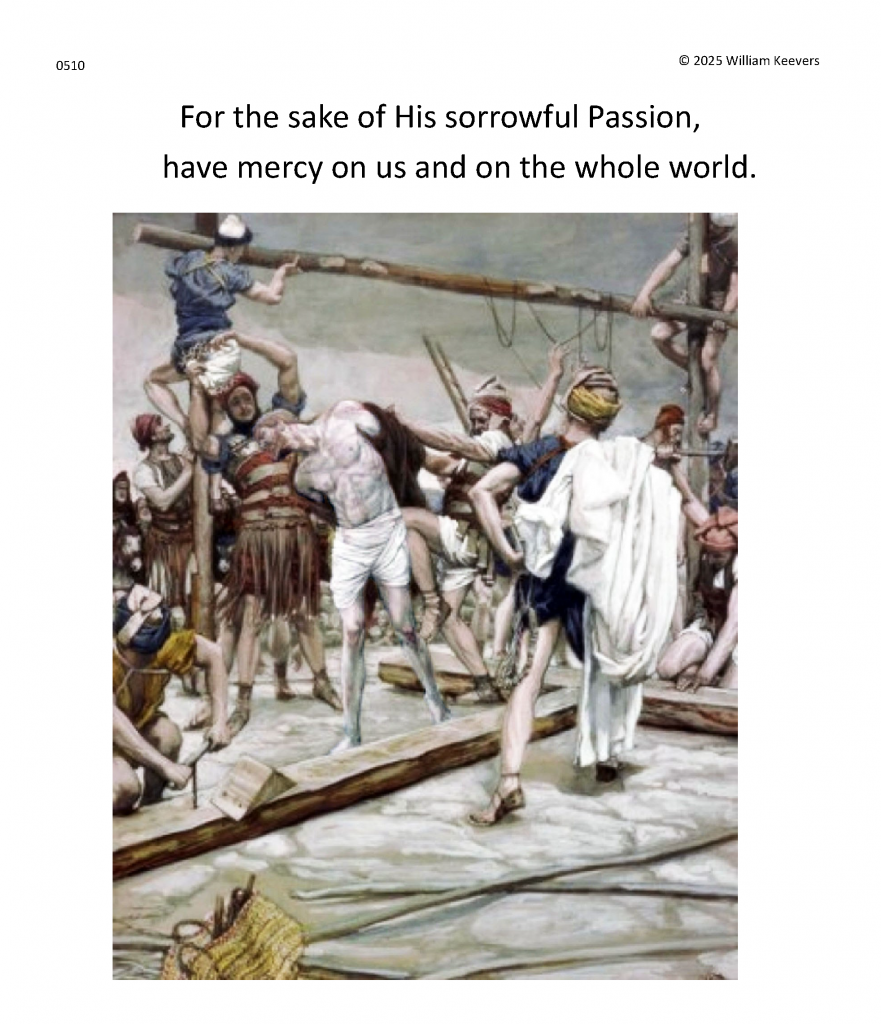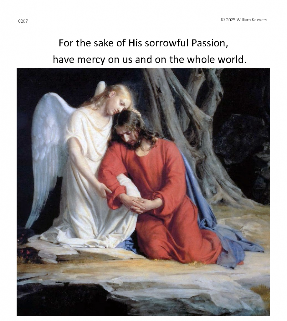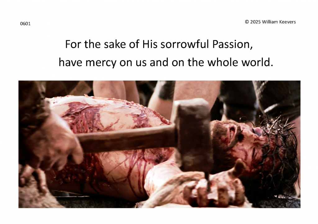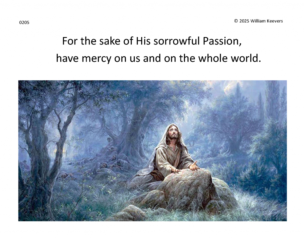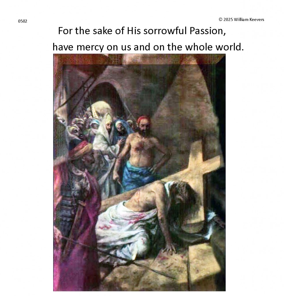 This page is a mockup for a video of The Chaplet of the Divine Mercy currently under development. The video’s elements are in three layers.
