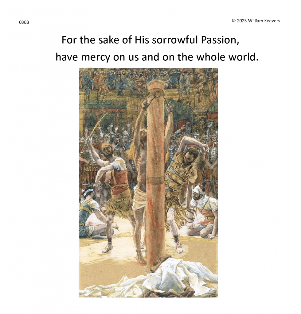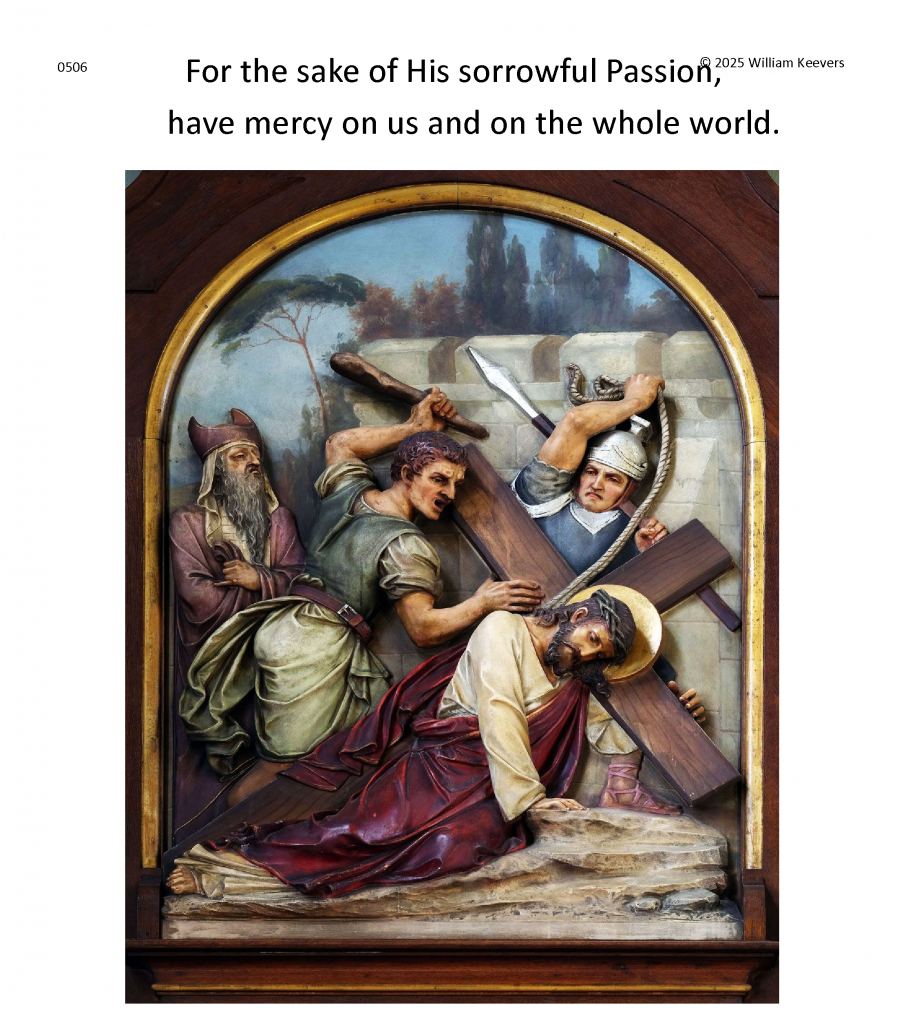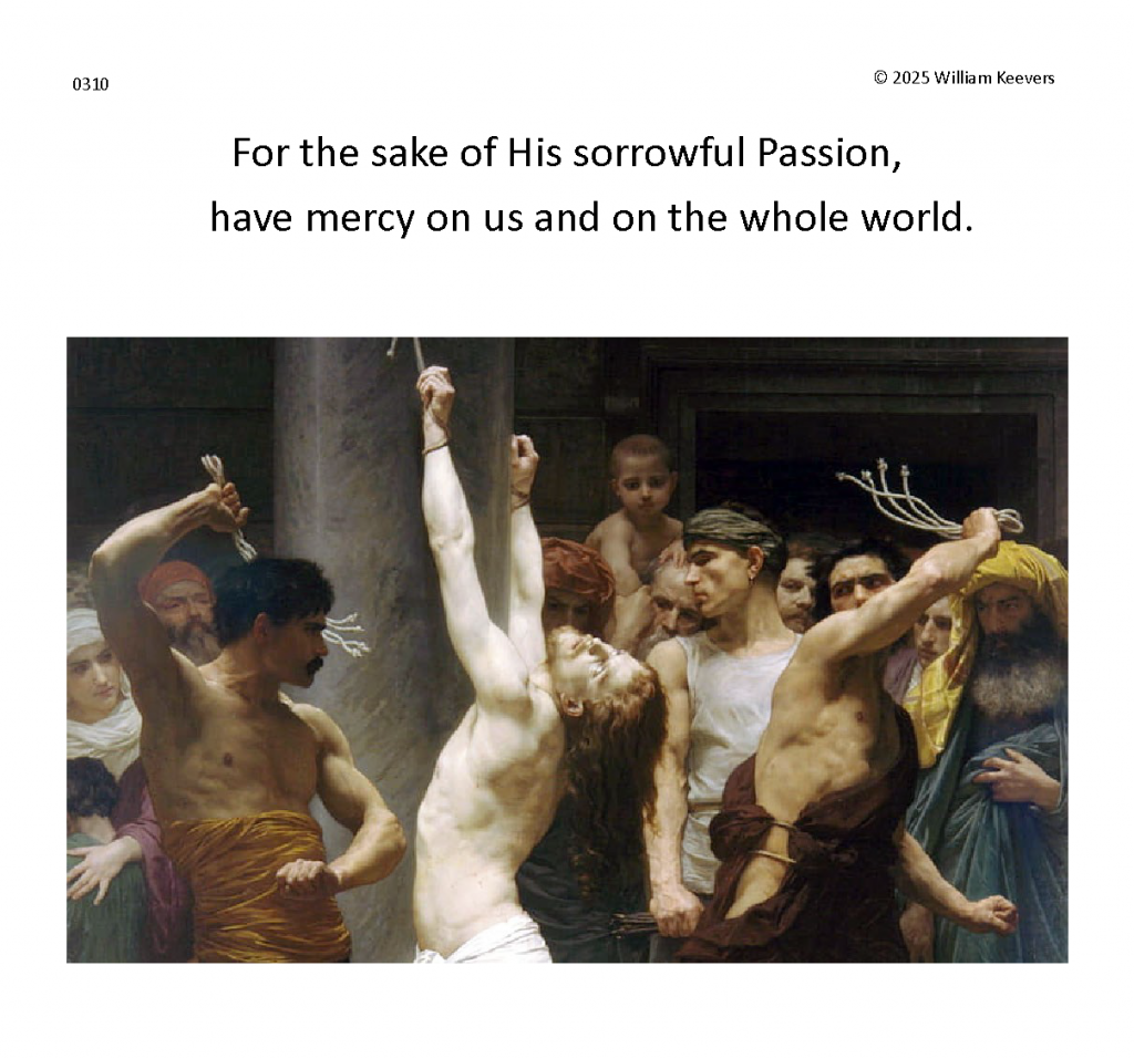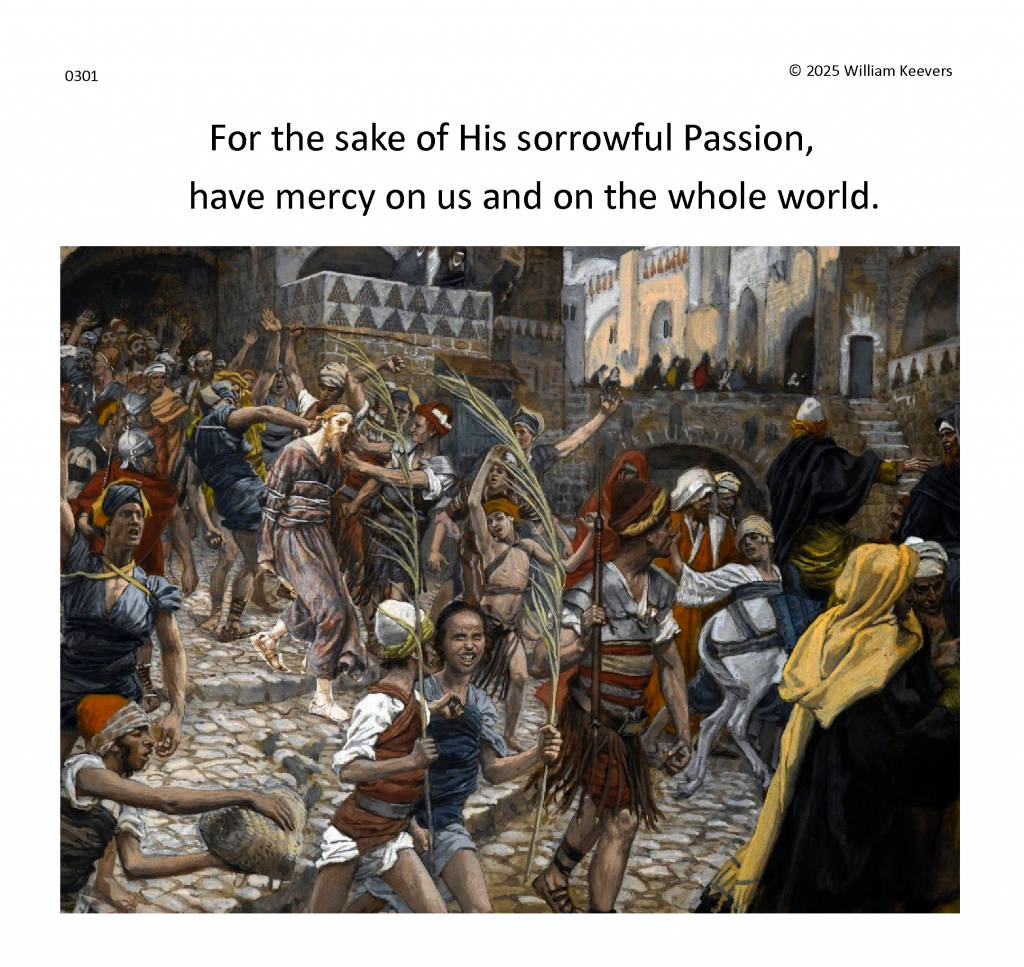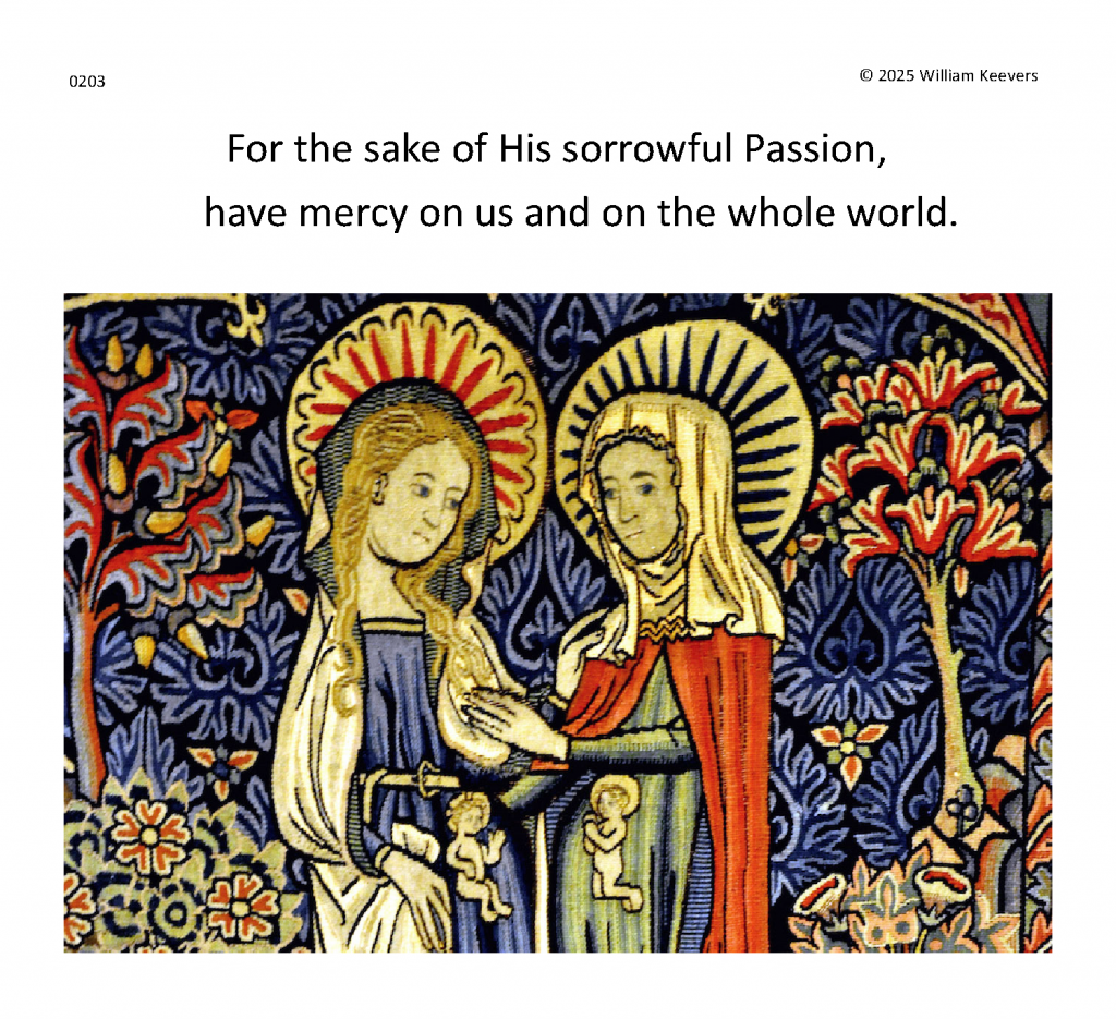 This page is a mockup for a video of The Chaplet of the Divine Mercy currently under development. The video’s elements are in three layers.