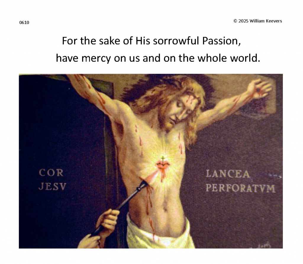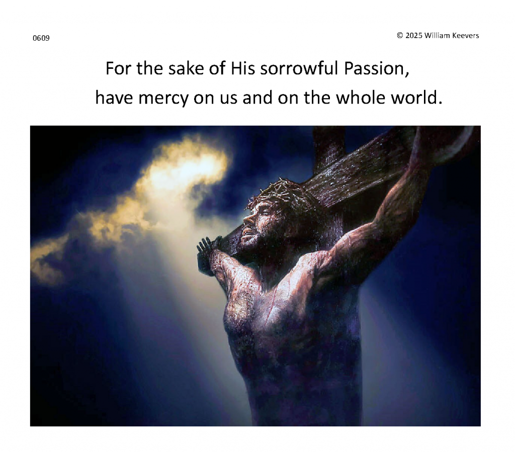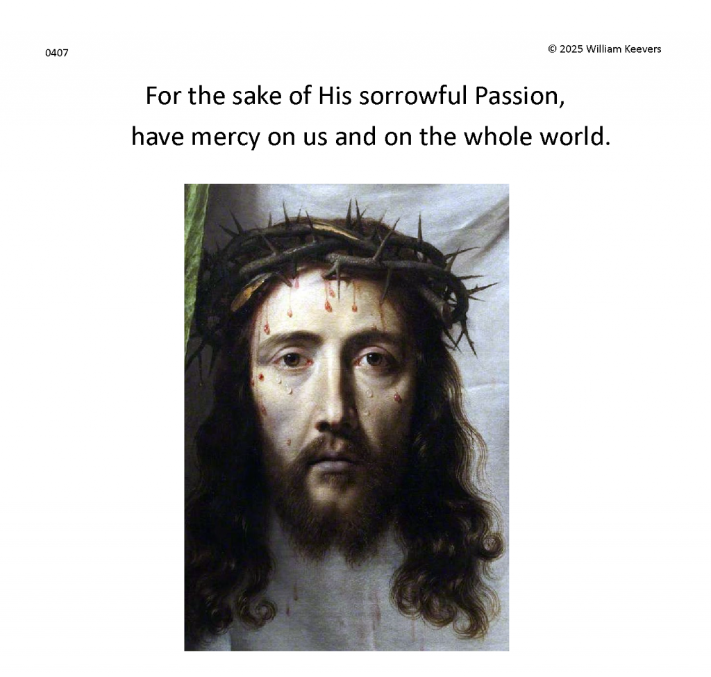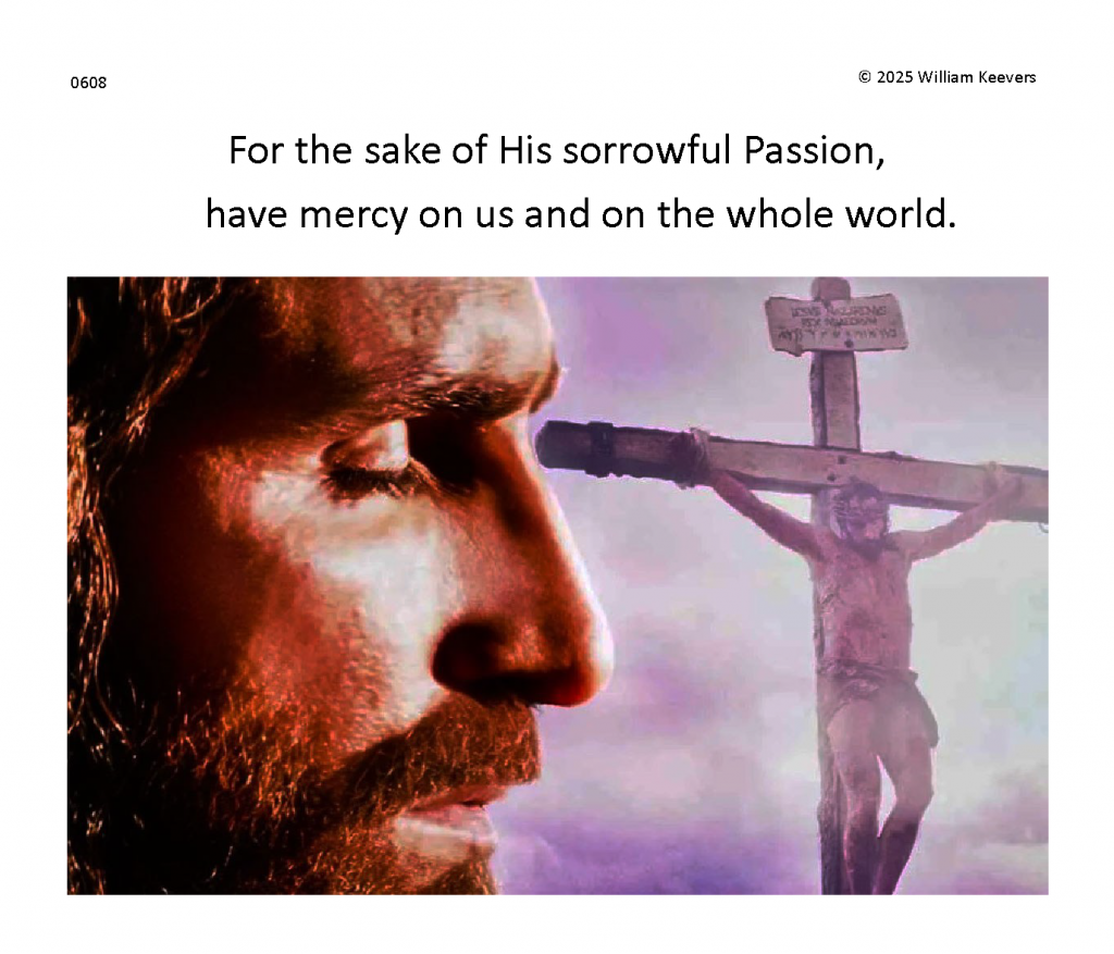 Separate and distinct images and meditations for each single prayer in The Chaplet of the Divine Mercy. Background music masterworks in separate settings of the ancient hymn Ave Verum Corpus, “Hail True Body” (Pope Innocent VI).