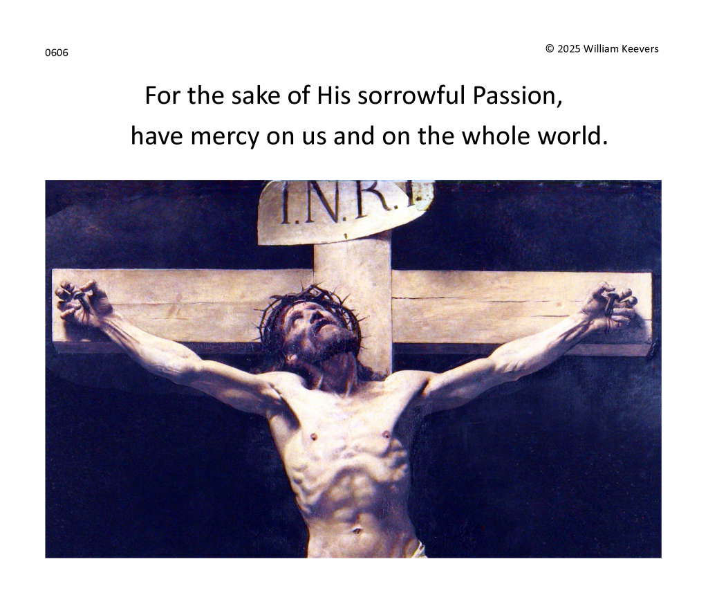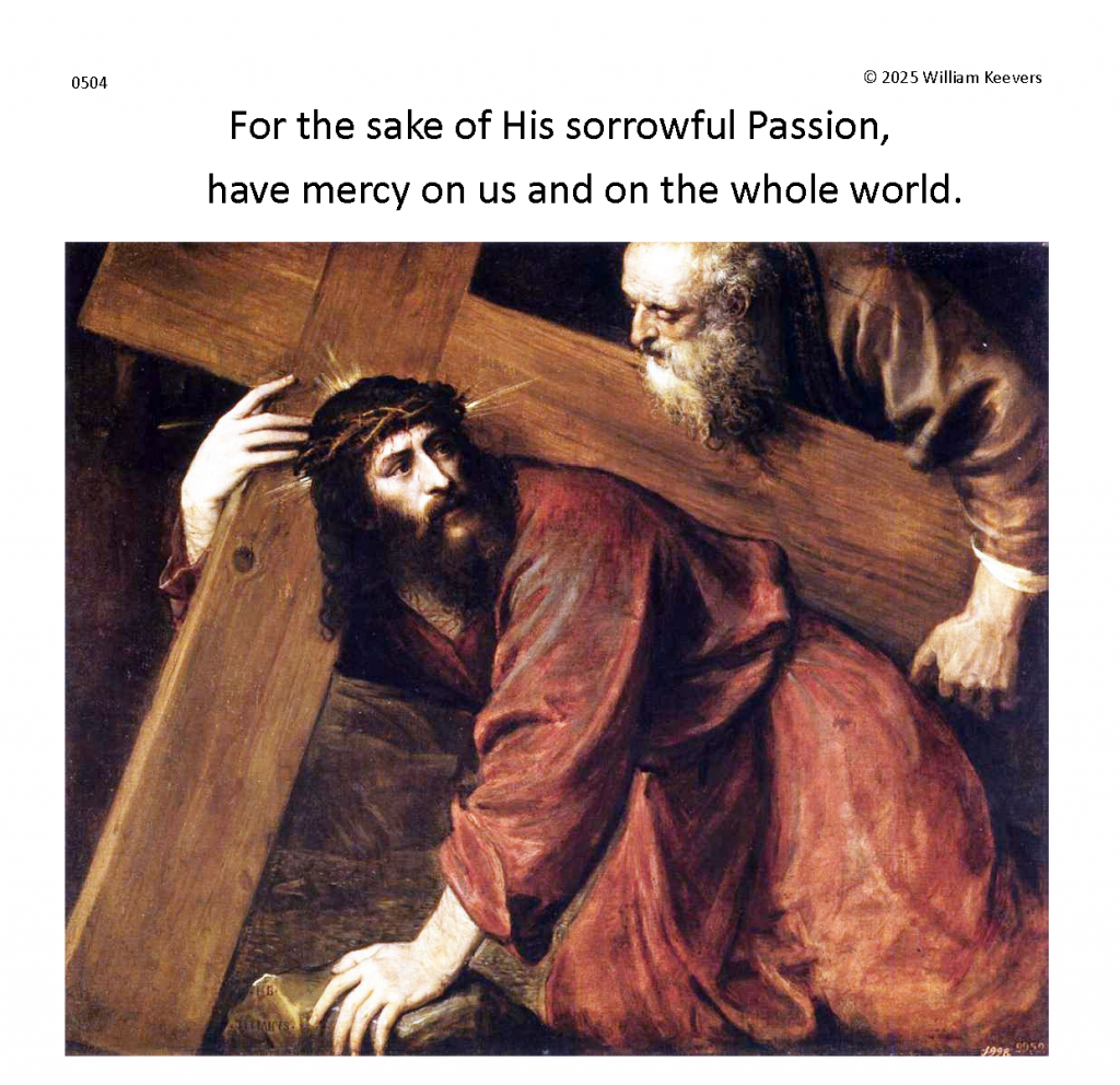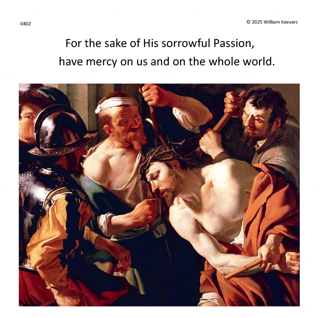 Separate and distinct images and meditations for each single prayer in The Chaplet of the Divine Mercy. Background music masterworks in separate settings of the ancient hymn Ave Verum Corpus, “Hail True Body” (Pope Innocent VI).